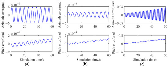 The error curve of the calculation of the direct numerical calculation method. (a) a = 1°, ω = 60°/s; (b) a = 3°, ω = 60°/s; (c) a = 1°, ω = 180°/s.
