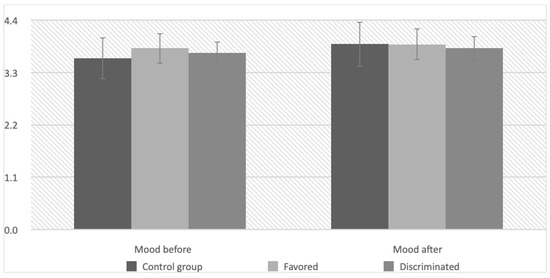 In the post-session questionnaire, we expect the following results regarding the moods of the participants: favored participants (experimental condition) > control condition participants > discriminated participants (experimental condition).