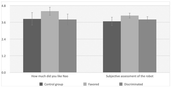 The analysis has shown that the research condition differs from the level of feeling of exclusion from the team. To test the exact differences, post hoc tests with Games–Howell correction were carried out. It turned out that the discriminated participants felt a stronger sense of being excluded from the team than those favored by the robot (p = 0.009) and the control group (p = 0.015). However, no differences were found between the favored and the control groups (p = 0.844). Moreover, all groups that are being compared do not differ in terms of the feeling of belonging to the team.
