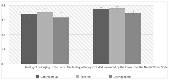 The discriminated participants will report a higher feeling of exclusion, which is indirectly measured by the items from the Needs Threat Scale [49,50].