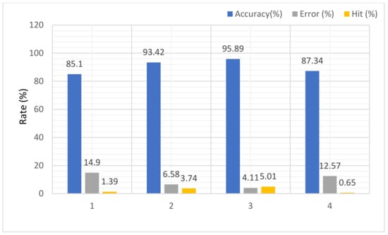 The performance report depicted in Figure 11, Figure 12, Figure 13 and Figure 14 indicates that feature-trained image accuracy of the different subjects is efficient as compared to Eigen, random and normal feature images. Instagram have much more accuracy compared to other Facebook, Utube and database (self) image the reason might be that it was not tempered and contains all its feature being captured whereas the images of Utube have less accuracy compared to other images. The preliminary score will help to evaluate the overall score of each frame by averaging the score at the maximum level to get desired verification rate. The security level can be improved more by assigning each image with unpredictable coding that has some private key instead of hash coding. The accuracy rate (%) and error with hit rate (%) are mentioned in Table 1, Table 2, Table 3 and Table 4 for various databases i.e., own created, Utube, Facebook and Instagram.