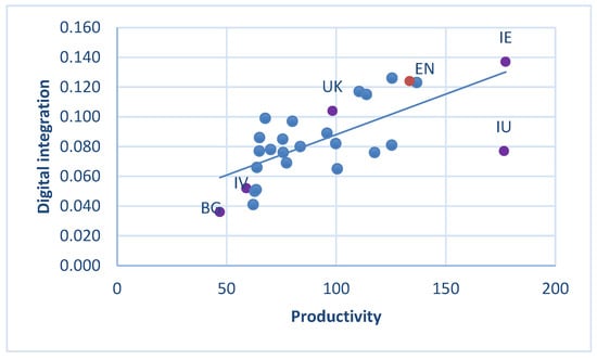 The relationship between digital integration and productivity. Source: Processing based on data provided by Eurostat [16].