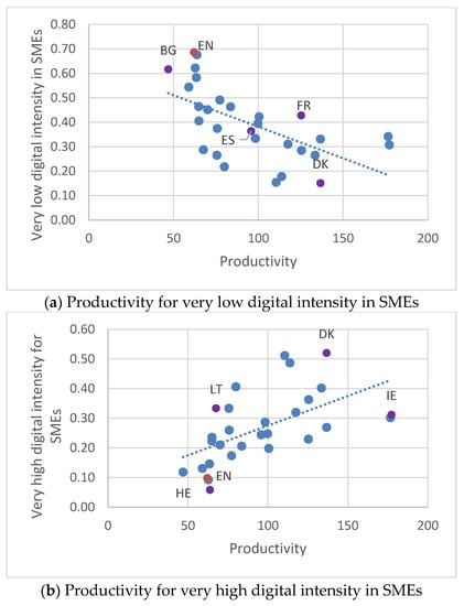 The relationship between digital intensity in SMEs and the level of productivity. Source: Processing based on data provided by Eurostat [16].