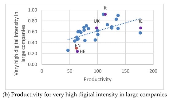 The relationship between digital intensity in large companies and the level of productivity. Source: Processing based on data provided by Eurostat [16].