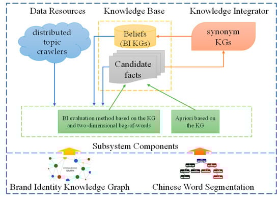 The beliefs include: (1) BI manage KG. It is used to show the relationship between the concerned brand-related knowledge. The cold start data of this knowledge map is provided by domain experts and corrected by Knowledge Integrator. (2) The brand word cloud based on timeline. It stores the evolution of the brand strategy.