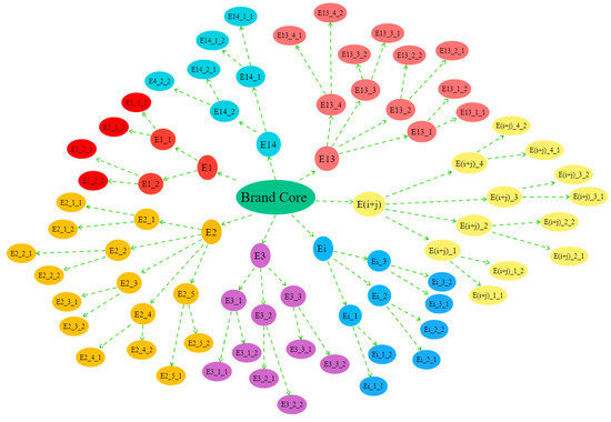 The Ex layer (x = 1,2, …, 14) nearest to the Brand Core of the KG are the 14 attributes in the “brand identity system”, i.e., E1 = 1 Product scope, E14 = 14 Brand tradition. Based on the Ex layer, we define the relationship between specific words and brand attributes in the next 2 layers (Ex_y and Ex_y_z, y = 1,2, …; z = 1,2, …). Each ontology in Ex_y and Ex_y_z consists of words with specific concept, which are defined for products with different brand concepts and management strategies, i.e., as coffee and air conditioner, through the method of artificial experience, combined with the description of communication and advertising industry experts. In addition, the specific words are constantly enriched during the NEL learning. The Ex_y layer is responsible for interpreting the “brand identity system”, and the Ex_y_z layer is responsible for concept representing. Due to the specific concept, the ontologies in the outer two layers can be used for Internet information acquisition and NLP methods.