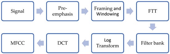 - Davis, S.; Mermelstein, P. Comparison of parametric representations for monosyllabic word recognition in continuously spoken sentences. IEEE Trans. Acoust. Speech Signal Process 1980, 28, 357–366. [Google Scholar] [CrossRef]