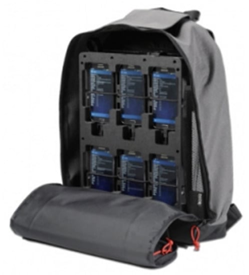 The walk test is another type of MBB measurement that is setup in a similar way to drive testing. However, walk tests involve walking along typical locations such as subways, pedestrians, sports stadiums, airports and malls and taking network measurements. The test equipment for a walk test is affixed to the back of the test taker or placed in a carrying harness during measurement periods []. Figure 5 shows an example of such a carrying case with mounting prepared to firmly carry six mobile phones. The cell phones are programmed to take performance measurements for the different MNOs through an application installed in them, as the carrier walks around defined areas. Walk tests are more expensive than drive tests as the cost of collecting data per unit area is high. The test is also limited by the walk speed and distance covered by the carrier of the test device.