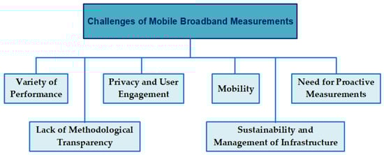Furthermore, when designing future technologies, MBB measurement can be valuable for benchmarking and planning network upgrades. The MBB performance measurement of the 4G networks reported in [,] are studies conducted to determine the baseline for 5G capabilities and assess the inefficiencies that should be addressed in the 5G network. Some of the points highlighted and the benchmarks estimated were considered in the 5G pilot MBB measurement reported in [,,,].
