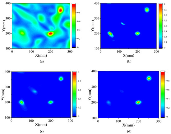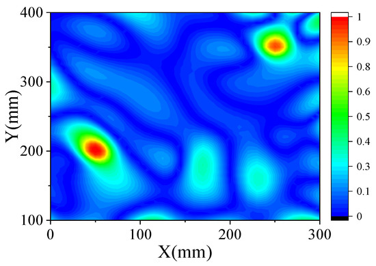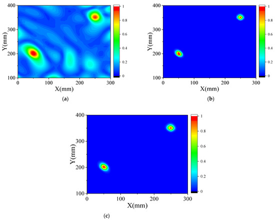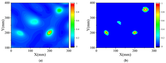 In this example, an imaging area size of mm2 is set. The coordinates of the PIM sources are (50 mm, 200 mm) and (250 mm, 350 mm). In addition, white Gaussian noise was added to check the performance of the proposed method. The mean value of the added noise is 0 and the variance is the average power of the noise.