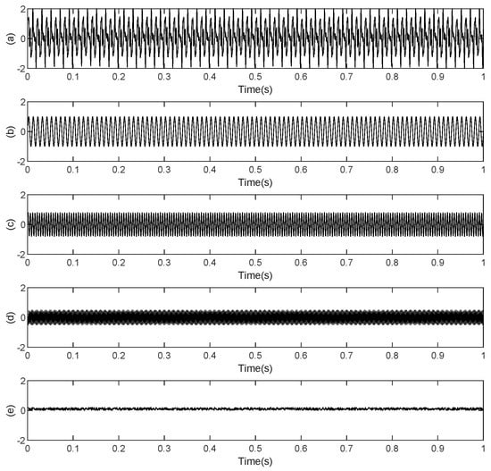 The mixed signal and its components. (a) Mixed signal; (b–e) basic signal 1–4.
