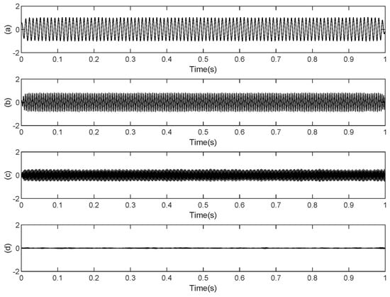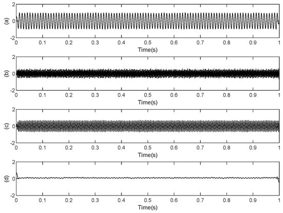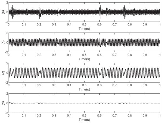 The IMF components 1–4 (a–d) of the mixed signal after VMD when [K, ] = [4, 1000].