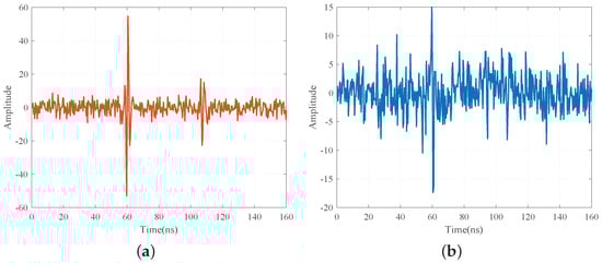 Pseudo-random coded ultra-wideband (UWB) radar has the advantages of a high signal-to-noise ratio (SNR) and high range resolution [], which provides technical support for detecting shallow structures of the moon. However, the signals acquired by pseudo-random coded UWB radar are still inevitably polluted by various noise sources, including environmental noise and human interference. This leads to inaccurate results and hinders the interpretation of the acquired data.