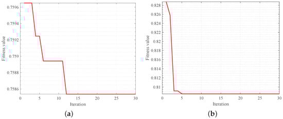 Convergence curve of fitness function of WOA-VMD-BD of measured data. (a) HH polarization mode. (b) HV polarization mode.