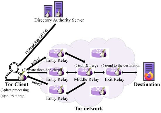 - Dingledine, R.; Mathewson, N. Tor Protocol Specification. 2019. Available online: https://gitweb.torproject.org/torspec.git/tree/tor-spec.txt. (accessed on 1 January 2020).