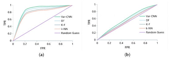 Today, deep learning (DL) methods have produced breakthrough applications in a number of fields, such as pattern recognition and automatic speech recognition, and CNN and DNN are two of the most mature methods in DL. Because of their exceptional performance, deep neural networks (DNN) can effectively represent large amounts of input data by extracting high-level features from raw sensory data and applying statistical approaches to do this. Earlier methods that used manually extracted features or rules created by experts were different from this. Convolutional neural networks (CNNs) are a subclass of feed-forward neural networks, with a deep structure and convolutional computation. In terms of automatic feature extraction, processing a huge number of features, offering great performance, and requiring minimal preprocessing work, CNN has the capacity for representation learning. In recent studies, researchers have commonly used deep learning algorithms to identify network traffic patterns and obtain the desired accuracy through model design and parameter tuning, which have the advantages of high accuracy, good robustness, and wide applicability. For example, they can use convolutional neural networks to perform WFP successfully even with a small amount of data, such as Var-CNN [5]. They do not need to manually extract fingerprint features, and automatically extract features through machine learning algorithms, and can improve recognition accuracy [6,7]. They can also derive high attack accuracy over little encrypted traffic by leveraging adversarial domain adaption based on deep learning, such as adaptive fingerprinting [42]. In this study, we argue that attackers will tend to use deep learning algorithms for classification.