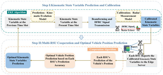 where and denote x-coordinate and y-coordinate of the l-th RSU. and are more accurate kinematic state variables that are used as input for the EKF prediction at the next time slot.