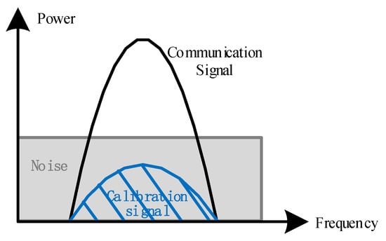 In order not to disturb the normal communication traffic flow and to allocate the limited transmitting power to the communication signal as much as possible, the power of the injected calibration signal must be lower than noise in the real-time online calibration system. The power level relationship of communication signal, calibration signal and noise is shown in the