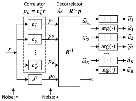 Figure 3, the calibration process is seriously disturbed by the high-power communication signal. In order to eliminate the strong interference from communication signal, a decorrelation algorithm is introduced by multiplying the inverse matrix of the correlation matrix with the correlation peak values. The structure of calibration receiver based on decorrelation is shown in