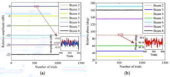 Figure 11. Because the experimental system is carried out under wired conditions, the relative amplitude and phase implementation results have high accuracy, close to the true values set by the signal generator (E4438C). The statistical results of means and RMSEs are shown in