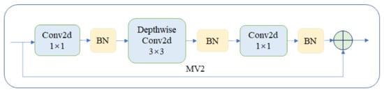 - Sandler, M.; Howard, A.; Zhu, M.; Zhmoginov, A.; Chen, L. MobileNetV2: Inverted Residuals and Linear Bottlenecks. In Proceedings of the 2018 IEEE/CVF Conference on Computer Vision and Pattern Recognition, Salt Lake City, UT, USA, 18–23 June 2018; pp. 4510–4520. [Google Scholar]