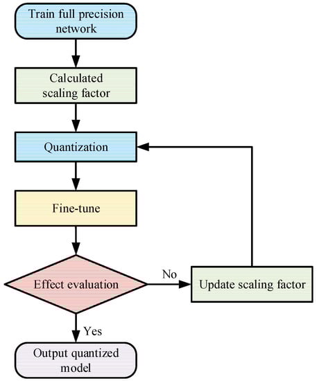 | Where is the weight of the pre-training model; is the threshold interval; is the initial accuracy of the model; is the threshold of accuracy; is the parameter to be quantized; is the scaling factor. | |