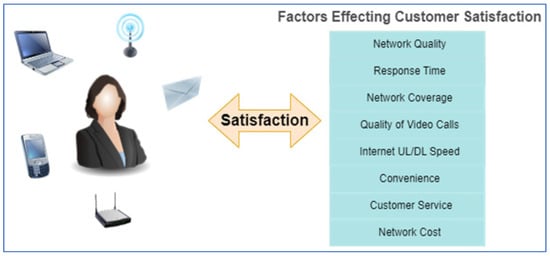 In the same way, Khan et al. [38] had been conducted a survey-based analysis to find the factors which can fulfill customer satisfaction in the telecommunication industry. To find the overall CEMI, he used six features of cellular service such as the quality of voice calls, network coverage, a call drop rate, internet services, duration of a call setup, and delivery of SMS. From the survey results, the author found that signal strength, network coverage, and voice quality were the key factors that have highly impacted customer satisfaction.