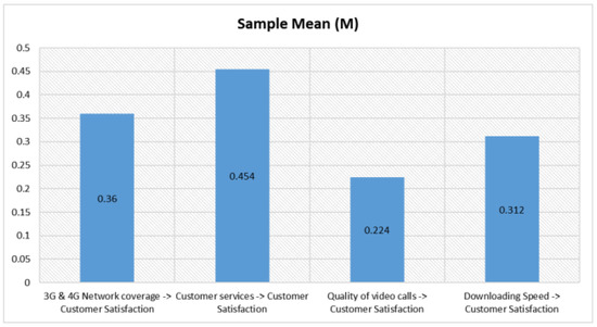 The graph of the sample mean is presented in Figure 11. The value of customer satisfaction is high than other independent variables.