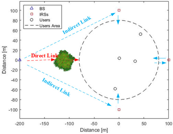 - Without IRSs: no IRSs are deployed in the system, i.e., solving with .