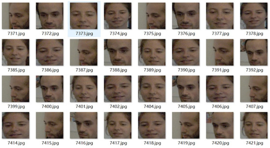 For the Gaze360 dataset, the entire dataset was split into training, testing, and evaluation sets, using the method described in [17]. Based on the phi-ai laboratory’s approach, the dataset was refined by removing images that did not have face detection results, as determined by the face detection annotations provided. Because some images in the Gaze360 dataset only show the subject’s back, they are not suitable for appearance-based methods that rely on facial features. Therefore, these images were excluded from the dataset, to ensure the accuracy and effectiveness of appearance-based methods. The training set contains 80,942 images, the validation set contains 11,318 images, and the testing set contains 16,031 images. Examples of processed images in Gaze360 are shown in Figure 7.