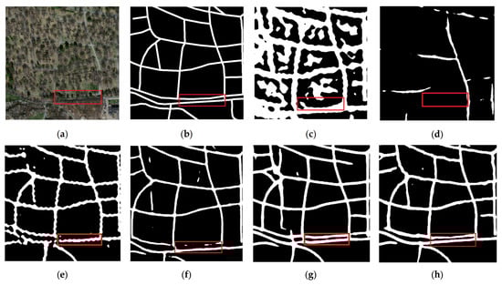 The continuous progress of remote sensing and artificial intelligence has laid a solid theoretical and technical foundation for road extraction. As an important ground object, roads play a crucial role in intelligent transportation [1,2], urban planning [3,4], and emergency tasks [5,6]. Traditional remote sensing road extraction uses manual interpretation, which consumes a lot of workforce and time. The automatic extraction of roads is helpful to reduce the manual workload, and it also accelerates the speed of road extraction, so road extraction has excellent research value. Due to the different shapes of roads, the influence of background factors, and being blocked by trees or shadows, the road extraction task is difficult and challenging [7,8,9].
