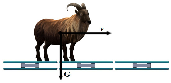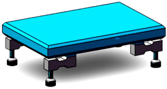 When the goat steps on the weighing body, in the process of moving forward, there is a certain impact on the body, which makes the pressure on the weighing body unstable, and the data obtained change accordingly. To ensure that the algorithm used in the weighing part fits the hardware architecture of this system and improves the measurement accuracy, and analysis of the data obtained from the sensors was performed through a simulation system to find a suitable algorithm. The model used for the tests was a single weighing body with a four pressure sensors structure, as shown in Figure 5.