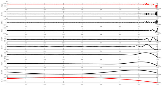 Cj(t) is the j-th IMF of the EEMD decomposition (i = 1, 2, 3, …, M; j = 1, 2, 3, …, J). The EEMD decomposition of the raw signal is shown in Figure 14.