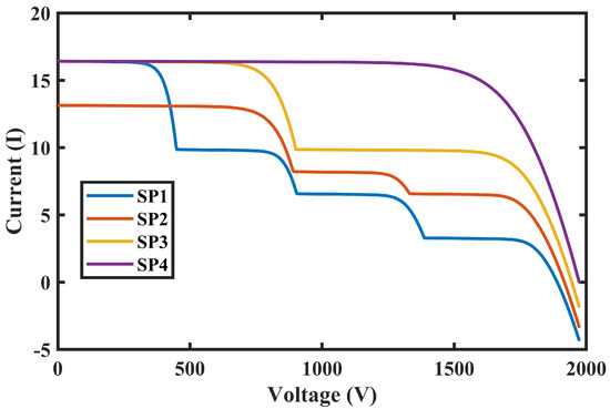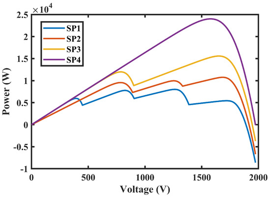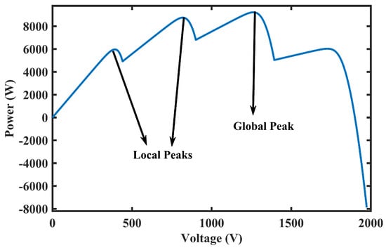 However, activating diodes at different voltage levels alters the characteristics of the PV system and results in multiple peaks, as shown in Figure 5. This trait can cause the system to operate at a local peak instead of the optimal global peak, resulting in a decrease in PV efficiency.