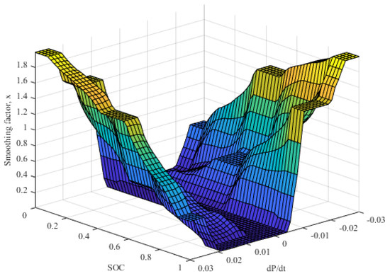 - Output: Smoothing factor (x) is adjusted according to the smoothing requirements defined by and the available energy in the SC.
