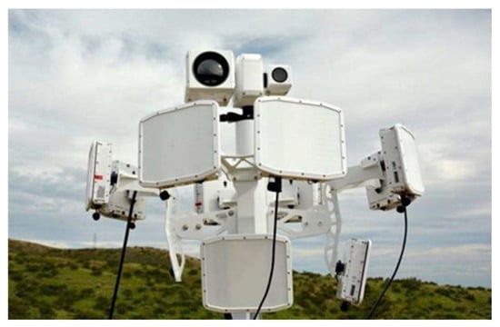 In April 2017, the United States developed the MLIDS integrated defense system [3]. As shown in Figure 1, by installing photoelectric infrared sensors and electronic jamming systems, radar detection and kinetic energy weapons on two mine-proof and anti-ambush vehicles (M-ATV), the UAV can be identified and tracked, respectively, and kinetic energy weapons can be used to strike targets [3]. The UAVX anti-UAV system [4] developed by the Black Monitor Company in the United States, as shown in Figure 2, is composed of an infrared camera with n 8× zoom, a visible light camera with a 6× optical zoom, and a radar with a 500 m detection range [4]. The neural network is deployed on a mobile computer with A15CPU and 192 cores of CUDA GPU to process and classify radar data. Effective UAV target detection and recognition can be achieved within 500 m, and zoom infrared and visible light cameras are used for target tracking. The same American surveillance and control anti-UAV system also includes the use of the optical and infrared detection NOAS system; the TCUT system integrating radar, optical and infrared detection [5] and so on [5].