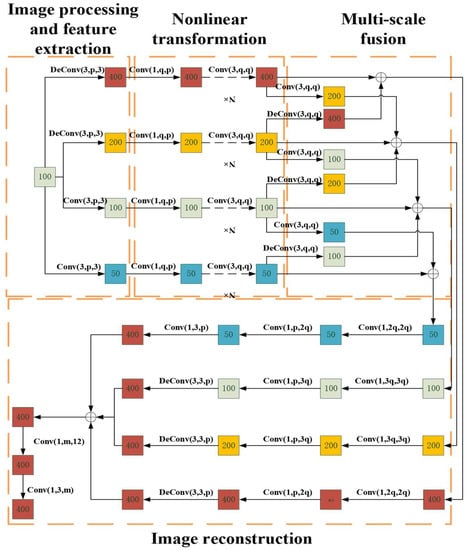 All the upsampling uses deconvolution, which can increase the receptive field, improve the image quality, and transform the reconstruction process into an end-to-end autonomous learning process.