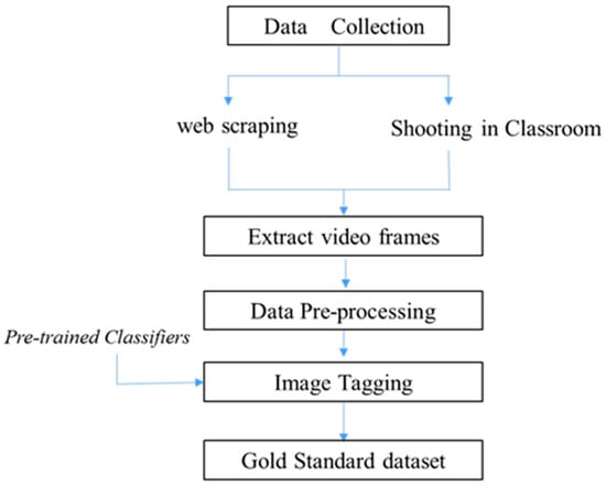 The process of dataset production (visually showing the collection and data processing process of the Classroom-Face dataset).