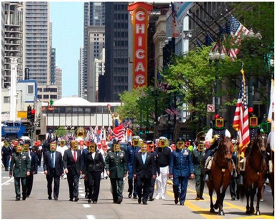 - Hu, P.; Ramanan, D. Finding tiny faces. In Proceedings of the IEEE Conference on Computer Vision and Pattern Recognition, Honolulu, HI, USA, 21–26 July 2017; pp. 951–959. [Google Scholar]