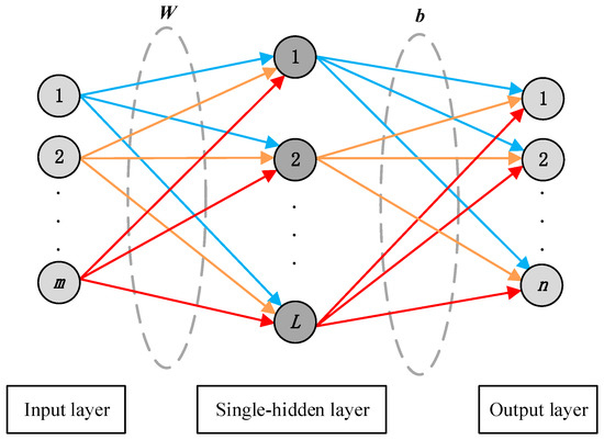 The extreme learning machines, proposed by Professor Huang [39], is a simple and efficient method for training single-hidden layer feedforward neural networks. It consists of an input layer, a hidden layer, and an output layer, as demonstrated in Figure 1.