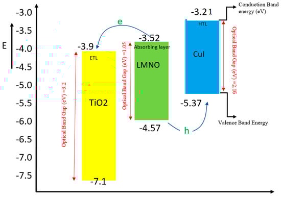Energy-level diagram of structure TiO2/LMNO/CuI.