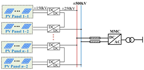 Compared with the traditional transmission system, the multi-voltage level DC grid has high power supply reliability and operation control flexibility. It has significant advantages in achieving reliable transmission of long-distance and large-capacity electric energy, promoting grid connection and the utilization of renewable energy, and improving the security and stability of the regional interconnection of the AC grid, as shown in Figure 1 [1,2]. It is considered to be an effective method to achieve the transformation of an energy structure and the optimal allocation of resources.