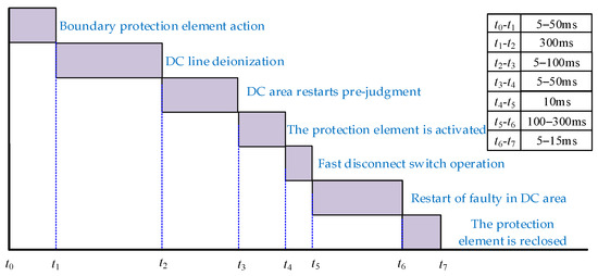 where tc1 is the time for fault detection and identification; tc2 is the time for the fault-clearing element’s action; tr1 is the time for reclosing; tr2 is the time for the restart process of the faulty DC area after successful reclosing.