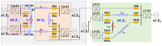Taking the zonal protection strategy for the DC grid in Figure 6 as an example, the ACZi and the DCZj are selected to analyze the impact on the system when a fault occurs in the DCZ.