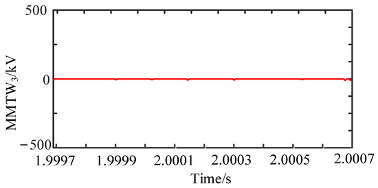 To further analyze the impact of the most severe out-of-zone fault on the fault discrimination in the protection of R1, the above polar-mode reverse-voltage traveling wave was subjected to fault feature extraction, and the wavelet mode maximum value at scale j = 3 was calculated. The results are shown in Figure 17. The polar-mode reverse-voltage traveling wavelet mode maxima have no significant wavelet mode maxima at scale j = 3, and the values are all around zero. Therefore, the fault belongs to an out-of-zone fault in the protection of R1, and protection is not carried out.