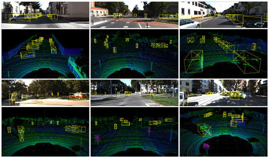 - Shi, S.; Guo, C.; Jiang, L.; Wang, Z.; Shi, J.; Wang, X.; Li, H. Pv-rcnn: Point-voxel feature set abstraction for 3d object detection. In Proceedings of the IEEE/CVF Conference on Computer Vision and Pattern Recognition, Seattle, WA, USA, 13–19 June 2020; pp. 10529–10538. [Google Scholar]