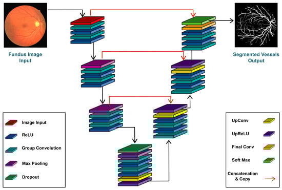 A great deal of recent development in terms of segmentation networks has been towards producing lightweight networks presenting lower than normal computational requirements. Galdran et al. [35] demonstrated that, if a U-Net is trained with precision and tested rigorously, its performance does not deteriorate even if the parameters are reduced by many orders of magnitude. More recently, ref. [36] presented several retinal vessel segmentation models that were minimized and modified to produce good and comparable results to their heavier counterparts.