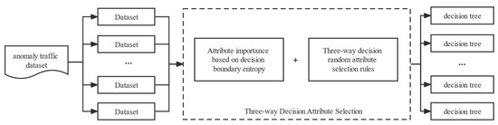 The use of three-branch decision-making allows for the prioritization of important attributes while maintaining the randomness of attribute selection. To further refine the selection process, we propose a novel approach based on decision boundary entropy to divide and process attributes within a given dataset. Through this approach, we are able to improve model accuracy during the training process without sacrificing the randomness of attribute selection, ultimately leading to greater efficiency in constructing abnormal traffic detection models.