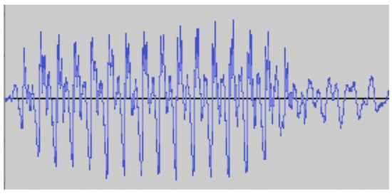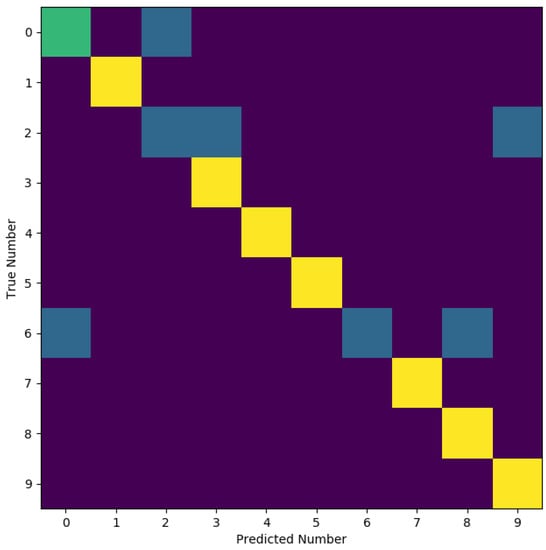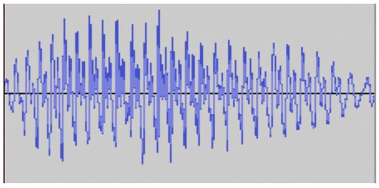 In an example of classification, the spoken digit to numerical digit classifier is created by the authors, and some results are shown. The spoken digit classifier is widely used by spoken language classifiers, such as those installed on smartphones. While those use more advanced cloud-based artificial intelligence systems, this example is based on a local instance of a three-layer recurrent neural network. The network is trained in a supervised manner on the multi-class problem of 0–9 spoken digit classification. The classifier takes as input the sound waveform and outputs the predicted number. Some of the input data is shown in Figure 2 and Figure 3, where the input waveform data is shown for the spoken digits nine and zero, respectively. The RNN network is trained, and after 80 epochs, the classifier has some success (≥80% accuracy), as shown in the confusion matrix in Figure 4.