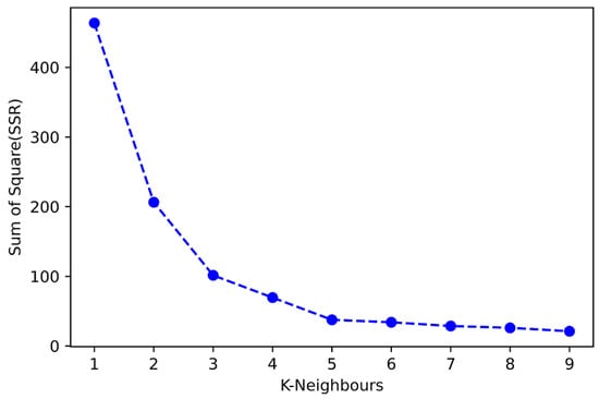 where shows the predicted value for a given point ad represents the actual value. The cost function is the sum of all the LSE for all the data points in the dataset and can be represented as in Equation (7), where n represents a number of data points.